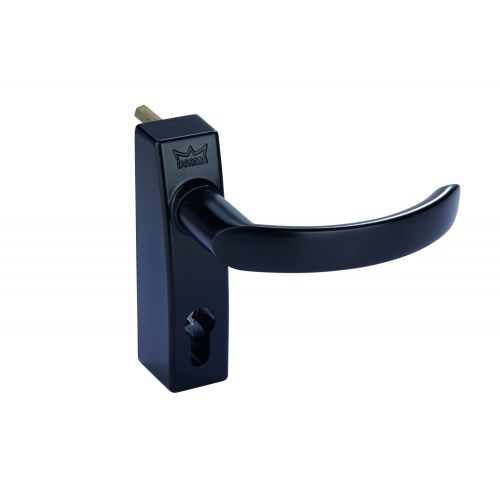 Herraje exterior con diseño PREMIUM para puertas contra incendio con un espesor de hasta 60 mm. Preparado para cilindro europeo con dos tornillos de fijación. Incluye manilla. El cilindro no está incluido en el suministro