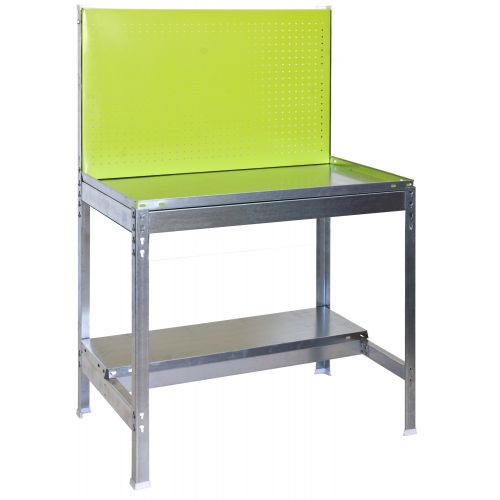 Banco de trabajo metalico sin tornillos con 2 estantes de bandejas de metal y panel metalico de herramientas. Ideal para jardin. Este banco se monta de forma facil y comoda gracias a su sistema de click. Su fondo es de 40 cmSin tornillos, simplemente con la ayuda de un martillo podras tener este banco de trabajo montado en 12 minutos.Tiene una capacidad de carga de 400 kgs el estante principal (600 kgs cuando el fondo es de 60 cm) y 250 kgs el estante inferior.Manipulacion sin riesgo, sin aristas de corte y es un producto fabricado en España.