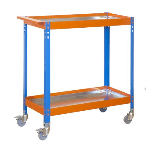 Carro metalico sin tornillos, con 2 estantes de bandejas de metal y ruedas. Se monta de forma facil y comoda. Su fondo es de 40 cmSin tornillos, podras tener este Wagon montado en menos de 12 minutos. Tienes a tu disposicion un video de montaje en Youtube. Sus perfiles son de 50 x 50 mm.Tiene una capacidad de carga de 75 kgs cada estante. Es facil de limpiar y tiene recubrimiento epoxypoliester.Manipulacion sin riesgo, sin aristas de corte y es un producto fabricado en España.