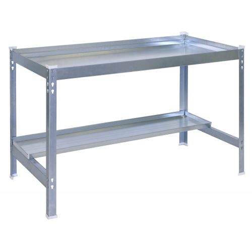 Mesa de trabajo de jardin sin tornillos y con 2 estantes de bandeja metalica. Sistema de montaje facil sin tornillos, en apenas 9 minutos. Es uno de los BT con mejor relación calidad/precio del mercado.Su fondo es de 60 cm.Tiene una capacidad de carga de 400 kgs el estante principal (600 kgs cuando el fondo es de 120 o 150 cm) y 250 kgs el estante inferior.Manipulacion sin riesgo, sin aristas de corte y es un producto fabricado en España.