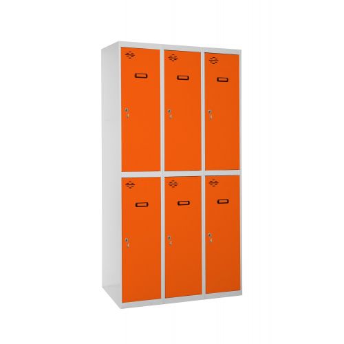 Taquilla metalica profesional montada con tornillos con 3 cuerpos y 6 puertas. Su fondo es de 50 cm. Incluye respiradero, etiquetero y llaves con cerradura.Tiene una capacidad de carga de 20 kgs cada estante. Es facil de limpiar y se adapta a cualquier espacio.Manipulacion sin riesgo, sin aristas de corte y es un producto fabricado en España.