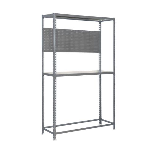 Estanteria metalica sin tornillos con 3 estantes. Incluye 2 bandejas metalicas y un panel de herramientas. Estanteria que se monta de forma facil y comoda gracias a su sistema de click. Sin tornillos, simplemente con la ayuda de un martillo podras tener esta estanteria montada en 12 minutos.Tienes a tu disposicion un video de montaje en Youtube.Tiene una capacidad de carga de 200 kgs por estante. La estanteria tiene un fondo de 40 cm.Contiene un recubrimiento plastico y acabado en epoxypoliester, que aumenta su resistencia a la humedad y a la corrosion. Es muy facil de limpiar. Manipulacion del producto sin aristas de corte, sin riesgos de manipulacion. Fabricado en España