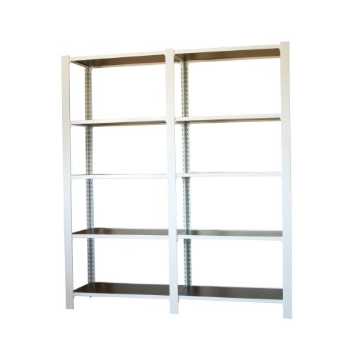 Pack estanterias metalicas sin tornillos con 5 estantes de bandeja de madera.Estanteria que se monta de forma facil y comoda gracias a su sistema de click, sin tornillos, simplemente con la ayuda de un martillo podras tener esta estanteria montada en aproximadamente 12 minutos. Es un producto fabricado en España.Tienes a tu disposicion un video detallado de montaje en Youtube. La capacidad de carga de cada uno de los estantes es de 200 kgs. Cada estanteria del pack tiene un fondo de 30 cm. Contiene un recubrimiento plastico y acabado en epoxypoliester, que aumenta su resistencia a la humedad y a la corrosion. Ademas es muy facil de limpiar. Manipulacion del producto sin aristas de corte, sin riesgos de manipulacion.