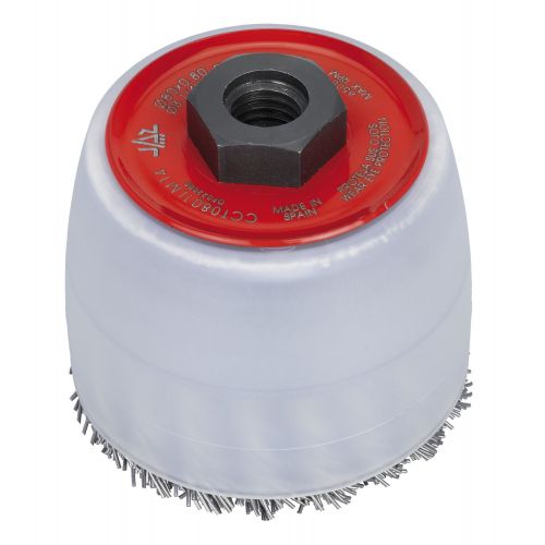 Cepillo de control alambre trenzado, diam. 80, acero gris 0,8mm, M14
