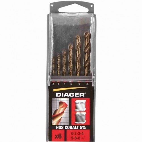 ESTUCHE SOLO 6 BROCAS HSS 5% COBALTO DIAGER - 2-3-4-5-6-8MM