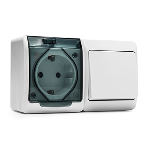 Conmutador 10A + Base 16A con toma de tierra de superficie estancos IP54 Serie Pool 54