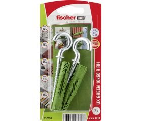 Taco universal fischer UX GREEN 10 x 60 RH con reborde y hembrilla abierta SB-card