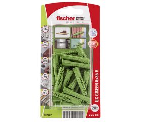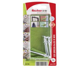 Taco universal fischer UX GREEN 6 x 35 R WH con reborde y alcayata SB-card