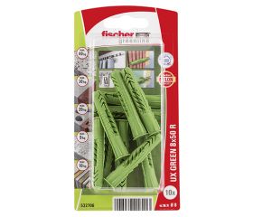 Taco universal fischer UX GREEN 10 x 60 R con reborde SB-card