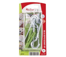 Taco universal fischer UX GREEN 8 x 50 R RH con reborde y hembrilla abierta SB-card