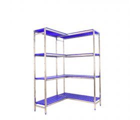 Estanteria esquinera de acero inoxidable con bandejas de polipropileno Simoninox Corner 4PP 500 Simonrack