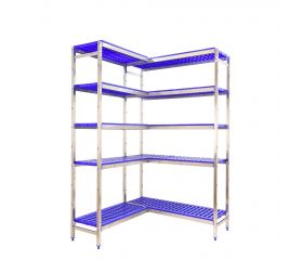 Estanteria esquinera de acero inoxidable con bandejas de polipropileno Simoninox Corner 5PP 500 Simonrack