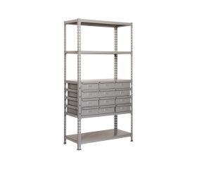 Estanteria metalica sin tornillos con bandejas metalicas y cajon Simonracing 3/400 Simonrack